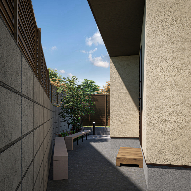 プライベート性の高いアウトドア空間は、読書やコーヒータイムにぴったり。コンパクトながらも、日常に“余白”をもたらすひと区画。