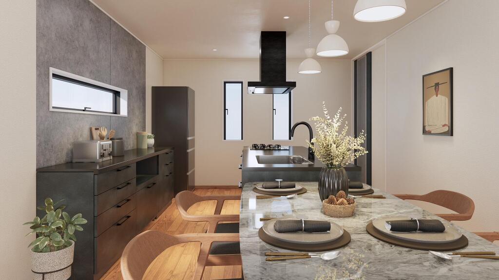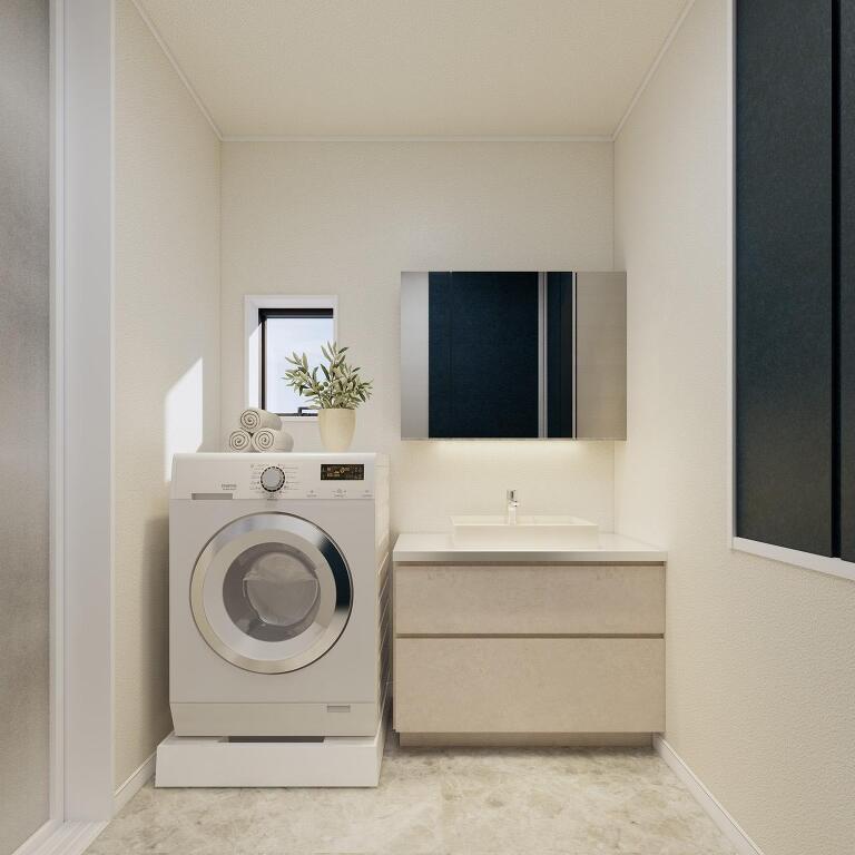 無駄を削ぎ落としたミニマルデザインに、上質な質感が映える洗面空間。機能美と清潔感が共存する、毎日使いたくなる場所です。
