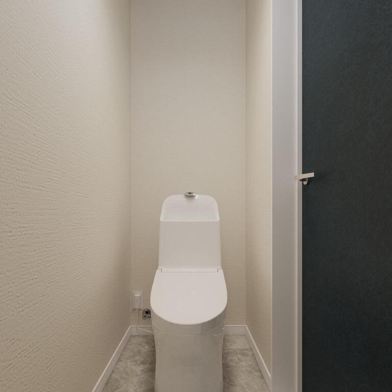 無駄のないすっきりとしたデザインが印象的なトイレ空間。清潔感があり、毎日気持ちよく使える心地よいスペースです。