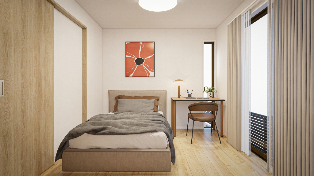 2号棟/2面採光で明るい1階洋室。在宅ワークや子どもの遊び部屋、来客用など、暮らしに合わせて柔軟に使えます。