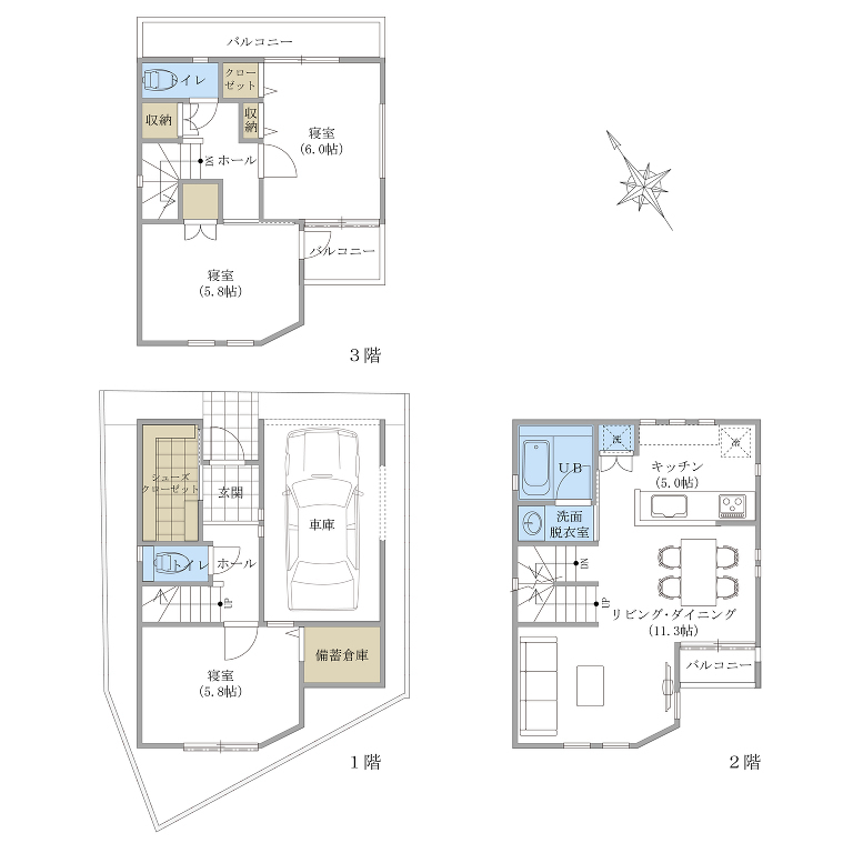 | 間取り | 3LDK | 建物構造 | 木造3階建て |