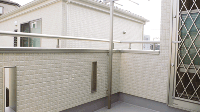 こうして岩間さんご一家のマイホームとなったのが、横浜市港北区の落ち着いた住宅街に建つ3階建ての新築住宅。静かな周辺環境と、東横線沿線の最寄り駅から歩いて10分ほどという便利さが両立した理想的な立地に、2台分の駐車スペースを備えた、まさに岩間さんのご希望どおりの住宅です。建物の間取りは1階と3階に6畳の洋室2部屋ずつが配され、2階は広々としたL D Kとバスルームという造りの4LDK。3階には約3畳と広く、日当たりの良いバルコニーも造られています。