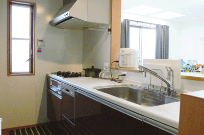 そんなご新居のお気に入りのポイントをうかがうと、天窓のある広くて明るいリビング、収納の多さ、思った以上の日当たりの良さなどを次々に挙げてくださったお2人。「お風呂が大好きなので、家族で入れる明るく広いお風呂はお気に入りです」とおっしゃるのは奥さま。「必要ないかと思っていた食洗機も、あるとけっこう便利で、友だちを大勢呼んだときなどにも重宝しています」とのこと。続いて車2台分の広い駐車スペースを挙げてくださったお2人は「2人目の子供が産まれたら、夏にはここに子供用のプールを出して、家族4人で遊ぶのが夢です」と笑顔で語ってくださいました。