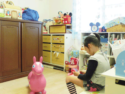 吉川さんが新しいマイホームにお引っ越しをされたのは、2011年の8月のこと。それまでお住まいだったマンションからわずか2~3分というご一家にとって理想的な立地の、3階建て新築住宅です。間取りは1階に洋室1部屋とバスルーム、2階にはゆったりしたLDKと大きな押入れのある和室、3階には洋室2部屋が配された4LDK。ビルトインタイプの駐車スペースもしっかり確保されています。