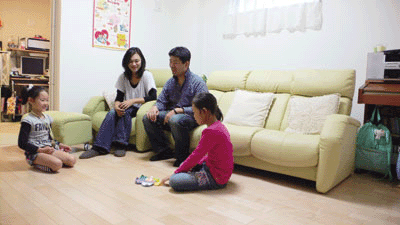ご新居の気に入っている点をうかがうと「とにかく室内が明るいのが良いです」とお2人。「床の色も白を選ぶなど、明るく見えるよう工夫はしたものの完成までは心配だったんですが、最初に家に入ったときとても明るくて感動しました」とのこと。また「対面式のキッチンが良いですね」と奥さま。使いやすいキッチンでは、お子さんたちも楽しくお手伝いができるのだとか。また「マンションでは上の子の部屋しかなかったので、下の子の部屋も作れる間取りはうれしいです」とお2人。さらに「和室も気に入っているので、これから片付けて、くつろげる場所にしたいです」と話してくださいました。