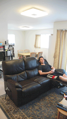 「これまで住んでいたところと比べると広さが倍ぐらいになったので、お手入れは大変ですが、それも嬉しい悲鳴ですね」と話してくださったご主人。お気に入りのポイントをうかがうと「いろいろありますが、やっぱり希望どおり自分の部屋をもてたのは嬉しいです」とのこと。また「リビングでテレビを見ながらくつろいでいると、とにかくホッとするんです。広くてゆっくり入れて、手入れもしやすいお風呂も気に入っています」と話してくださいました。続いて「トイレが1階と2階にあるのはとても便利です。バルコニーが2階と3階にあるのも、使い勝手が良くて嬉しいです」とご主人。さらに「とくに3階の部屋はとても日当たりが良くて、冬でも夜まで部屋にぬくもりが残っているぐらいなんです」とおっしゃるご主人は「妻は使い勝手が良いキッチンが気に入っているみたいです」と語ってくださいました。