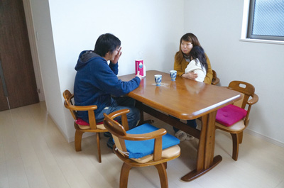 大和住販との出合いをうかがうと、「看板を見たことがきっかけです」と奥さま。「中古住宅が売りに出ていまして、そこに看板があったんです。その住宅が気になって電話してみたところ、残念ながらその家は購入先が決まってしまったとのことでしたが、それから住宅を紹介していただくようになりました」と教えてくださいました。「担当の営業さんが爽やかで、本当に熱心な方だったんです。学区内の色々な住宅を紹介してくれましたから、安心してお願いできると思いました」とお話しくださったのはご主人。その言葉を受けて奥さまも、「子供にも優しくて、気軽に質問できましたし、最後には一緒に食事もしたんですよ」と、色々と思い出されたようでにっこり。