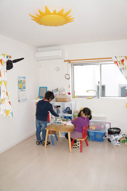 カラフルに彩られたご長男のお部屋。太陽の照明がお気に入り。