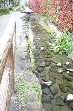 家の近くの長閑な遊歩道。鯉も泳ぐせせらぎの道が続いている。