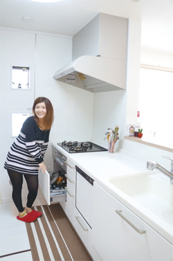 収納も豊富な対面式キッチンは奥さまのお気に入り。お2人でキッチンに立っても余裕があるのでぶつからず快適とのこと。