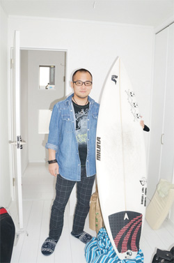 1階の部屋には、ご主人のサーフィングッズが収納されている。朝4時ごろに海へ出かけて行くというご主人。寝室が別にできたため奥さまを起こさずにすむようになったとのこと。