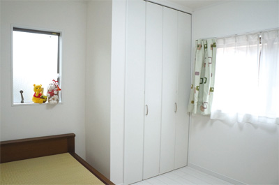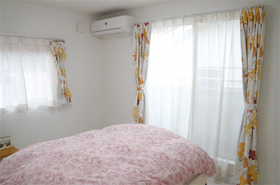 3階の1部屋。ここも日当たりが良く快適。収納もたっぷりある。今のところ来客用のベッドを置き、ゲストルームにしている。近々両親に遊びに来てもらう予定。