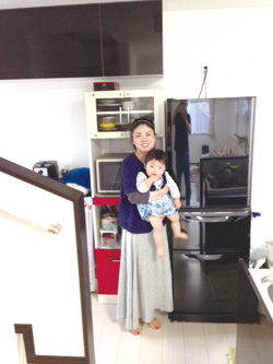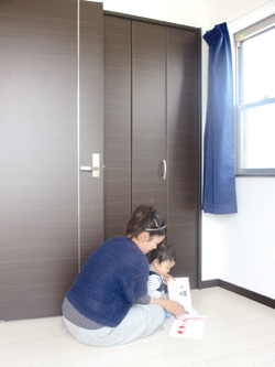 インテリアには、こだわりを持っていらっしゃるというご主人。新居にお住まいになるにあたって、家具などはどのように選ばれたのかをうかがうと、「実は収納スペースがたくさんあるので、家具を買い足す必要がなかったんです」と教えてくださいました。白い壁を基調にした部屋の雰囲気が、以前お住まいの部屋に似ていたこともあり、今まで使っていた家具をそのまま置かれたそうです。「私も新たな家具よりは大型の冷蔵庫が欲しかったんです。家族がひとり増えたこともありますし。偶然にも大和住販不動産フェアご成約プレゼントで冷蔵庫が当選して、とても嬉しかったです」と奥さま。「近くにスーパーがあり買い物にも便利な場所なので、たっぷり食材が買えますね」とお喜びのご様子です。