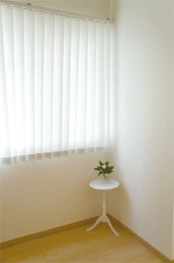 リビングの一角。ブラインドも白で統一して、家全体が明るい雰囲気になっている。