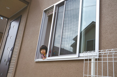 最寄り駅からバスで15分。幹線道路に面したバス停から小道に入ると、まだまだ自然が残る長閑な風景が目に飛び込んできました。緑豊かな坂を上っていくと9棟ほどの分譲地が見えてきます。その1棟の住宅の窓から顔を出した女の子に、ニコニコと笑いかけられて、そこが和田さんのお宅と気付きました。