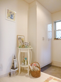 広々とした玄関にはお気に入りの雑貨や記念のアイテムを飾っているとのこと