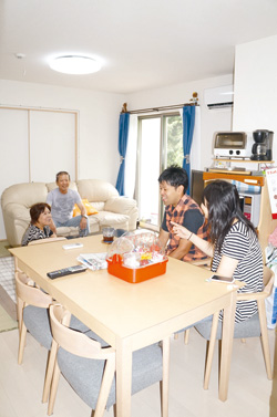 実際に暮らし始めてからの感想をうかがうと、「楽しいです」と口を揃えられた皆さん。「日当たりも抜群で快適な生活をしています。平日の昼間は、私以外はみんな仕事に出かけていますけれど、夕食時みんなで過ごせることが嬉しいです」とお母さま。その言葉に微笑まれたご主人、「夕食時にその日にあった出来事をお互いに話すのが日課になっています。今まで平日は夫婦だけの会話でしたけれど、今は大勢で話せるので、話にも広がりがありますね」と教えてくださいました。「以前は仕事と家事に追われているところがありましたけれど、今はお母さんが家にいてくれるので助かっています」とお話しくださったのは奥さま。家族の皆さんにとって帰宅してから家族で過ごす時間はかけがえのないものだそうです。