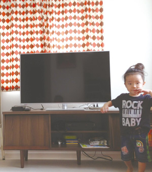 当選した大型テレビ。リビングでテレビを見る時間はご主人のくつろぎのひととき -