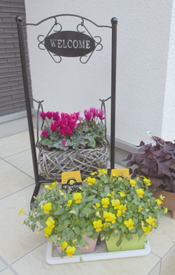 バス停から徒歩3分の場所にある佐藤さんのマイホーム。玄関前にはガーデニングが趣味のご主人が手入れをされた花壇がならぶ