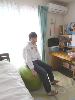 個性あふれる2人のお子さんの部屋。大学生の娘さんの部屋にはお気に入りの家具や小物が並ぶ。テニス部所属の中学生のお子さんはバランスボールを置いてトレーニング