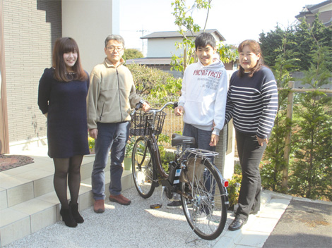 ご成約プレゼントで当選した電動アシスト自転車。家族みんなが使えて重宝しているとのこと