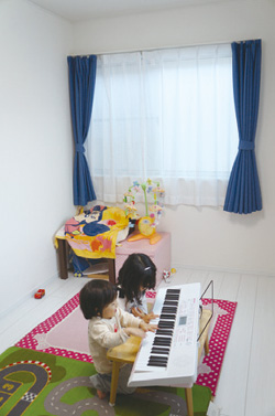 3階の日当たりの良い子供部屋で遊ぶお子さん達。ピアノが得意