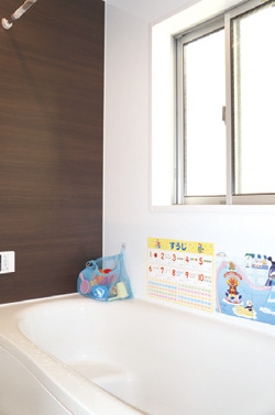 以前の生活から変化したこともうかがうと、「部屋数も増えてリビングも広くなって、そうしたら不思議と心にも余裕がでてきた気がしています」と答えられた奥さま。「今までだとおもちゃは常に片付けないと空間ができなかったのですが、例えば今はリビングにプラレールも広げておけるんです。それに友達が遊びに来た時には、子供達は子供部屋で遊ぶようになりましたので、その間私もママ友と少しゆっくり話せるようになりました」と教えてくださいました。平日は帰宅時間が遅く子供達とは遊ぶことができないというご主人も、休日には一緒にお風呂に入ることが楽しみになったとのこと。「以前はお風呂場が狭かったのでシャワーばかりだったんです。今は子供と一緒に長風呂をしています」と微笑まれました。