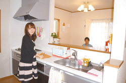 閑静な住宅街に佇む森さんのお宅は、2階建ての4LDK。以前は川崎市のマンションに住まわれていたお2人ですが、毎月家賃と同じ金額くらいの支払いで住宅ローンが組めるならば新居を購入したほうが良いのではと考えて、家探しを始められたそうです。住宅探しで重要視されたことをうかがうと、「ペットのポンタにも快適に生活してもらいたいので、一戸建てを選びました。それから重要視したのは間取りです。見学した3階建ての住宅は2階部分がリビングになっていて上下に部屋が分かれていたんです。なんとなく家族でそんなに分かれて暮らさなくてもと感じて、2階建てにしました」とご主人。「それと和室があることも条件にしました。両親が泊まりにきた時や将来子供ができた時にも、和室は便利だと思ったんです」とも教えてくださいました。「私は広いカウンターがついた対面式キッチンがある家が希望でした。ずっと憧れていたんですよ」と教えてくださった奥さまは、「キッチンからダイニングやリビングが見渡せますから、これから子育てするのにも向いていると思うんです」とにっこり。