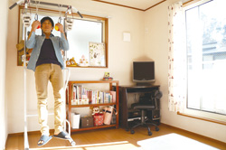 現在2階の1室は、ロッククライミングが趣味というご主人のトレーニング部屋に。「日が昇る前から日が暮れるまで同じ岩にへばりついていたりするんですよ。考えられないですよね」と奥さま。「いやいや、続けていると今までできなかったことができるようになるんです。その達成感たるやたまらないものがあるんです!」とご主人。お料理が大好きという奥さまには得意料理をうかがうと、「マイブームは揚げ出し豆腐と炊き込みご飯です」と教えてくださいました。「茶碗蒸しとかもさっと作ってくれます。ケーキやパンも得意です」とご主人今年中にハワイ旅行に行く予定です