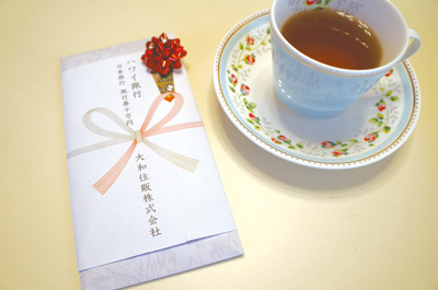 家を探されてみての感想をうかがうと、「住宅の購入を決めた後が一番大変でした。実はその時期にイタリアに新婚旅行に行ってきました。もともと新婚旅行が先に決まっていた予定でしたから」とご主人。「それですごく慌ただしく家具やカーテンを選ぶことになってしまいました」と奥さま。「引っ越し当日は、電気、ガス、網戸、エアコン、カーテンレールの業者さんに一斉に来ていただくことになってしまい、色々な方に頼まれてサインをしたんですけれど、それを別の方のところへ持って行ってしまったりもしました」と苦笑い。「その慌ただしい時期に、住宅購入時に応募していた大和住販不動産フェア・ご成約プレゼントでハワイ旅行が当たったんです」とご主人。「今年中には行きたいと思っています」とお話しくださいました。