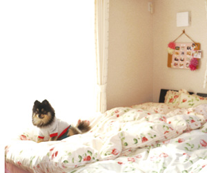 「夜は寝室でパパとママと一緒に寝ているんだ」というポンタくん。はりきって大好きな庭も案内してくれました。「庭はこれから手入れする予定です。まず芝を張って庭の隅のほうに煉瓦で花壇を作ろうと思っています。チューリップとか色とりどりのお花を植えたいです」とお話ししてくださったのは奥さま。「私は白い石を敷きつめたいと思ったんですけれど、家族会議で芝生に決定しました。芝生の手入れにちょっと手間がかかりそうですけれど、ポンタもそのほうが遊べますしね」とご主人