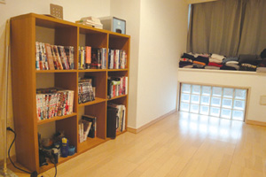 静かに本を読んだりすることのできるお気に入りのスペース。最近まで凝っていたのは、司馬遼太郎。現在は井上靖にはまっているとのこと