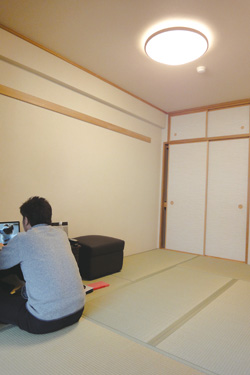 リビング横の和室。今のところは部屋の隅にパソコンを置いているだけだが、これからここも色々と工夫していきたいとのこと