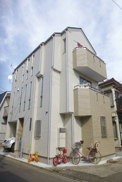 2013年11月よりお住まいの今井さんのマイホームは、川崎市幸区の閑静な住宅地に建つ3階建ての新築一戸建て住宅です。1階に5.5畳の居室と浴室。2階に19.3畳のLDK、3階に5.4畳、5.3畳、6.5畳の洋室が揃う、4LDKの間取りとなっています。