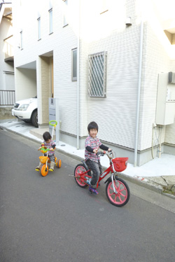 車通りが少ないので、お子さんたちが存分に家の前で遊べる。今は自転車がお気に入り