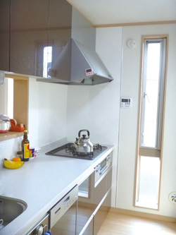 キッチンは作業スペースが広く、支度に便利。食器洗浄乾燥機もついて、家事もラクラク