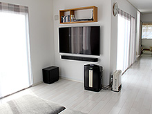 「テレビを壁掛けにしたかったので、アンテナ配線も希望の位置に追加してもらいました。テレビって置き型だとそれなりにスペースとりますし」と話されたのは、インテリアなどを決められたというご主人。落ち着いたカラーに統一されたリビングは、3人のお子様がのびのびと遊べる広さも兼ね備えた秀逸な空間。建売ながら、まるで注文住宅のように柔軟な選択ができたことに思わぬ喜びがあったようです。