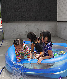久しぶりに暑さが戻った8月の休日、ご近所のお友達と水遊びを楽しむ2歳のお嬢様を見守りながらのインタビュー。新築住宅をご購入されるまでのいきさつや「総合的に大満足!」とおっしゃる、その住み心地についてお話を伺いました。