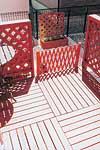 ご主人が自分で作ったウッドデッキにはテーブルとイス