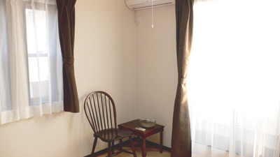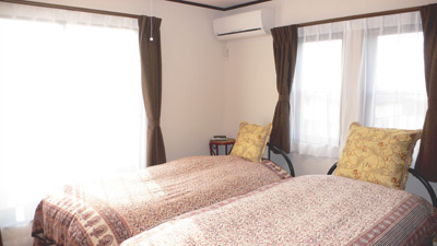 2方向に大きな窓があり、明るく風通しの良い寝室。窓からの眺めも良い