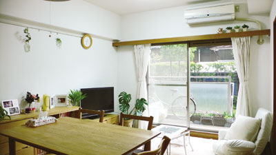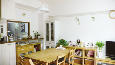 こうして松永さんご一家のマイホームとなったのが、横浜市旭区に建つ築12年の分譲マンションの1階。ご希望どおり、広いポーチと専用庭のある住戸です。間取りは南東に位置する庭に面したLDKと和室、共用廊下側に洋室2部屋という造りの3LDK。新築同様にフルリフォームが施された室内は、白を基調にしたとても明るい空間です。