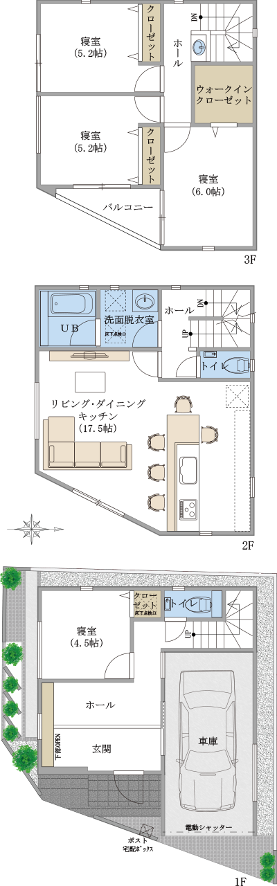 土地面積62.11㎡・建物面積107.64㎡+車庫14.9㎡