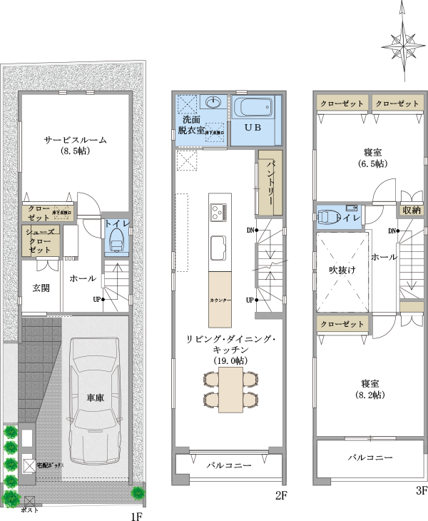 土地面積68.24㎡・建物面積113.08㎡+車庫12.42㎡